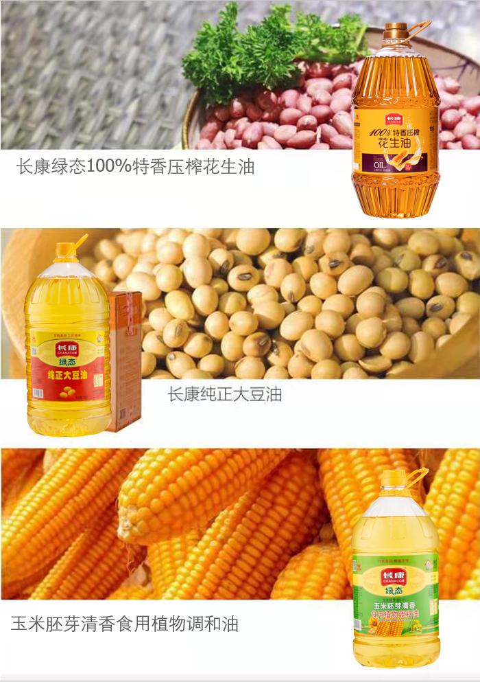 嚴(yán)選非轉(zhuǎn)基因原料成就好口感,傳統(tǒng)物理壓榨結(jié)合現(xiàn)代科技工藝保證安全原滋原味,嚴(yán)格質(zhì)量品控,長(zhǎng)康“綠態(tài)”系列食用油(菜籽油、玉米胚芽油、花生油、植物調(diào)和油...)滿足不同家庭的營(yíng)養(yǎng)和烹飪需求。